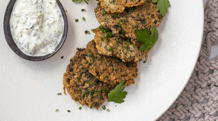 Pāua Fritters w/ Cucumber & Mint Yoghurt